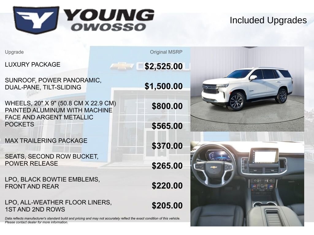 LOCAL TRADE!, 3RD-ROW SEATING!, 4WD, Tahoe LT, EcoTec3 5.3L V8, 4WD, Black Leather, 1st & 2nd Row Color-Keyed Carpeted Floor Mats, 2-Speed Active Electronic AutoTrac Transfer Case, 2nd Row Pwr Release 60/40 Split-Folding Bench Seat, 3rd Row 60/40 Power-Folding Split-Bench Seat, Advanced Trailering Package, Auto-Dimming Inside Rear-View Mirror, Bose 9-Speaker Stereo Audio System Feature, Bright Front & Rear Door Sill Plates, Color-Keyed Carpeting Floor Covering, Driver & Front Outboard Passenger Airbags, Driver Alert Package, Enhanced Driver Information Center, Extra Capacity Cooling System, Floor Console w/Storage Area, Hands-Free Rear Power Programmable Liftgate, HD Surround Vision, Heated 2nd Row Outboard Seats, Heated Steering Wheel, Hitch Guidance w/Hitch View, Infotainment Display, Integrated Trailer Brake Controller, Lane Change Alert w/Side Blind Zone Alert, LED Daytime Running Lamps, Luxury Package, Max Trailering Package, Memory Settings, Memory Settings for Driver, Outside Heated Power-Adjustable Mirrors, Power Tilt & Telescopic Steering Column, Preferred Equipment Group 1LT, Rear Cross Traffic Alert, Rear Pedestrian Alert, Remote Start, SiriusXM Radio w/360L, Smart Trailer Integration Indicator, Universal Home Remote, Wireless Charging, Wrapped Steering Wheel.