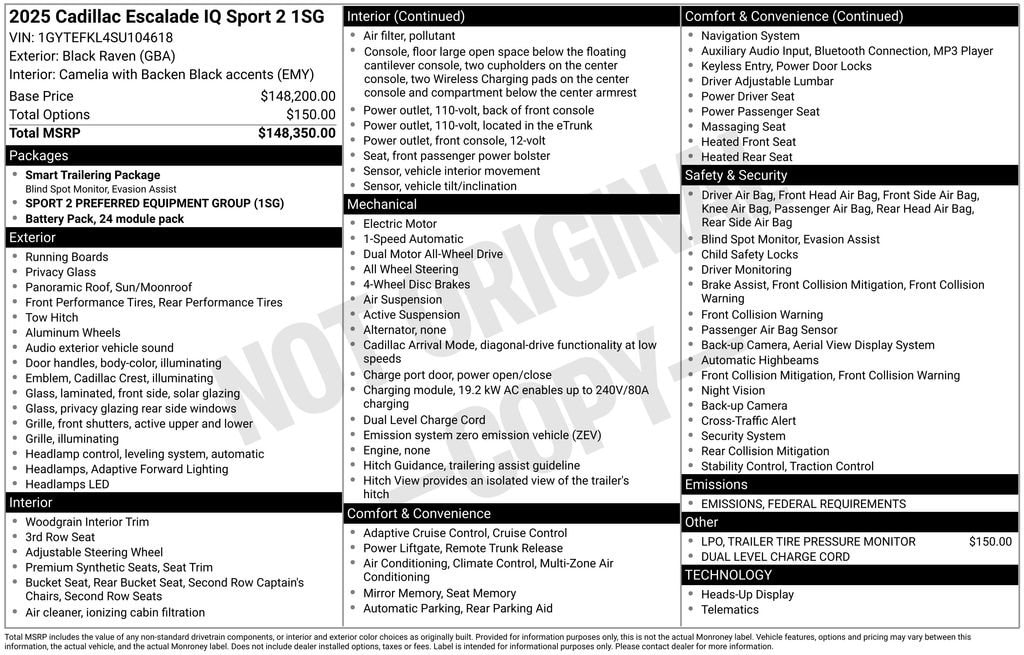 Black Raven 2025 Cadillac Escalade IQ Sport 2 AWD 1-Speed Automatic Electric ZEV 680hp