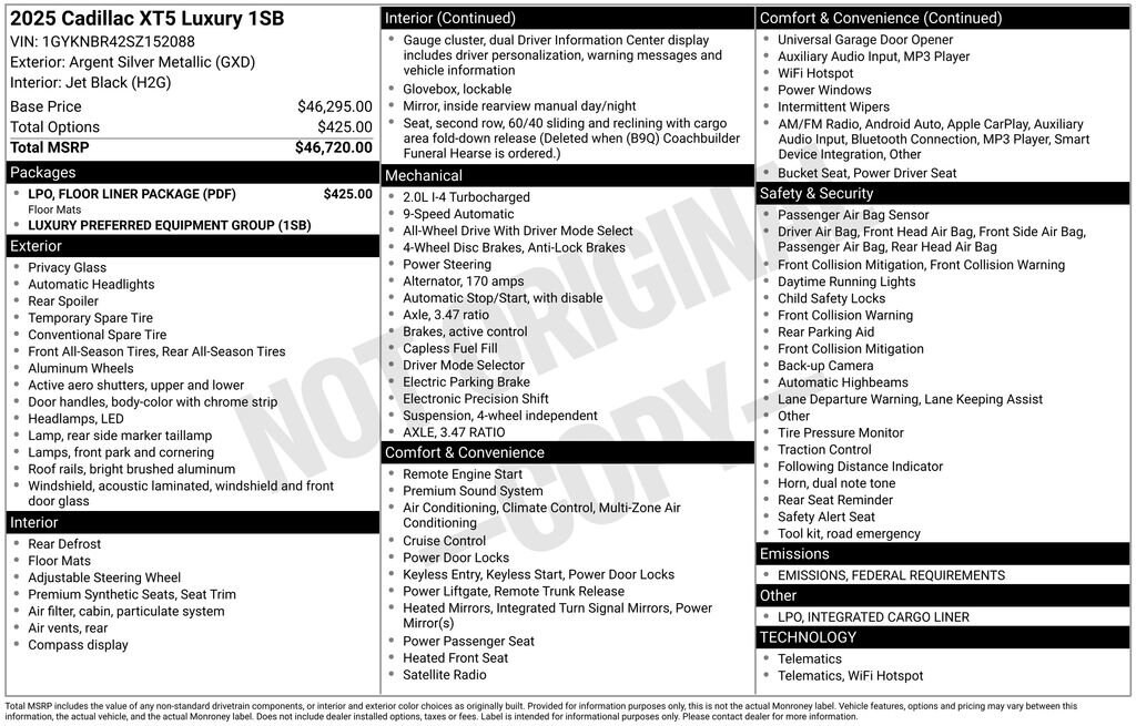 Argent Silver Metallic 2025 Cadillac XT5 Luxury AWD 9-Speed Automatic 2.0L Turbocharged