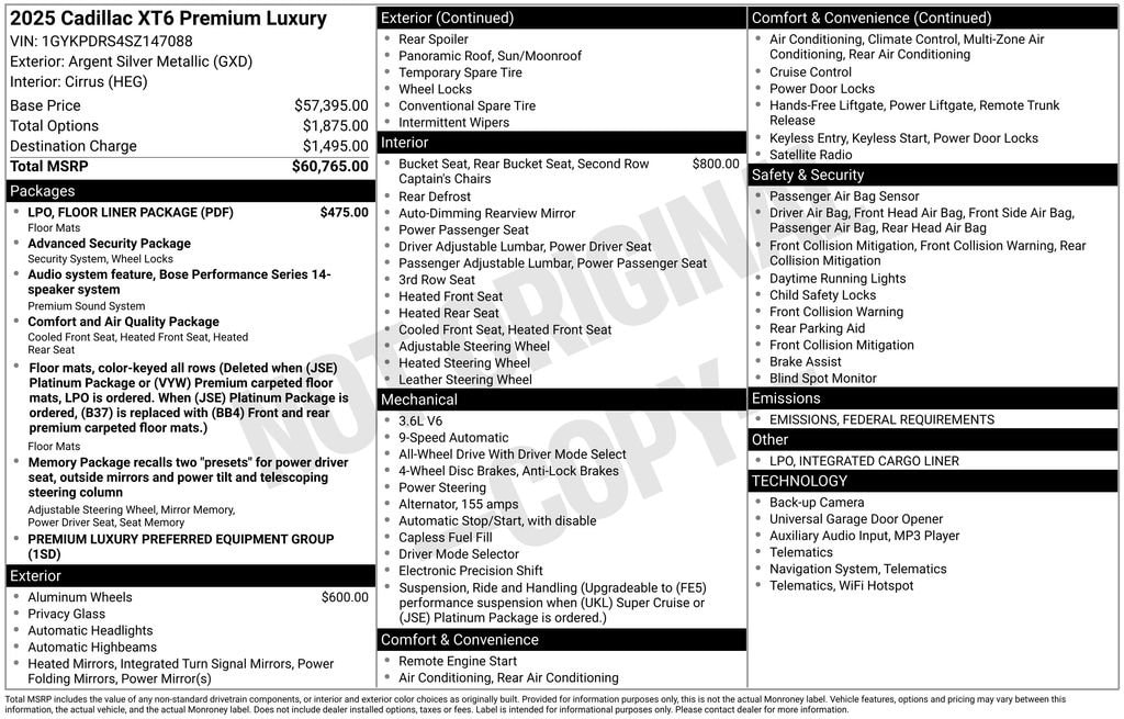 Argent Silver Metallic 2025 Cadillac XT6 Premium Luxury AWD 9-Speed Automatic 3.6L V6 DI VVT