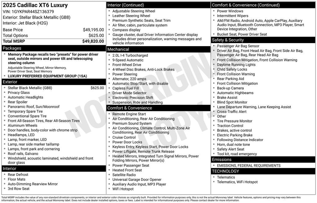 Stellar Black Metallic 2025 Cadillac XT6 Luxury FWD 9-Speed Automatic 2.0L Turbocharged