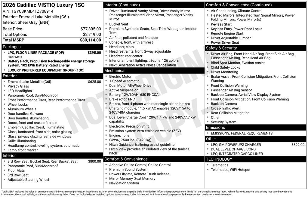 Emerald Lake Metallic 2026 Cadillac VISTIQ AWD 1-Speed Automatic Electric ZEV 615hp