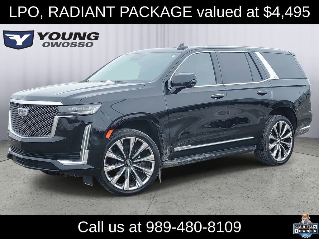 LOCAL TRADE!, CARFAX ONE OWNER!, CLEAN CARFAX!, 3RD-ROW SEATING!, Escalade Premium Luxury, 6.2L V8, AWD, Adaptive Cruise Control, AKG Studio 19-Speaker Audio System, Automatic Seat Belt Tightening, Bright Sport Mesh Grille (LPO), Door Lock & Latch Shields, Enhanced Automatic Emergency Braking, Enhanced Automatic Parking Assist, Glass Breakage Sensor, Heated & Ventilated Driver & Front Passenger Seats, Lane Change Alert w/Side Blind Zone Alert, Mechanical Limited-Slip Differential, Monochrome Cadillac Emblems (LPO), Power Panoramic Tilt-Sliding Sunroof, Preferred Equipment Group 1SB, Puddle Lamps w/Cadillac Crest (LPO), Radiant Package (LPO), Rear Camera Mirror, Rear Camera Mirror Washer, Rear Cross Traffic Alert, Reconfigurable Full-Color Head-Up Display, Reverse Automatic Braking, Running Board Assist Steps, Theft-Deterrent Alarm System, Vehicle Inclination Sensor, Vehicle Interior Movement Sensor, Wheels: 22 12-Spoke Chrome Alloy (LPO), Wheels: 22 Interim (LPO).