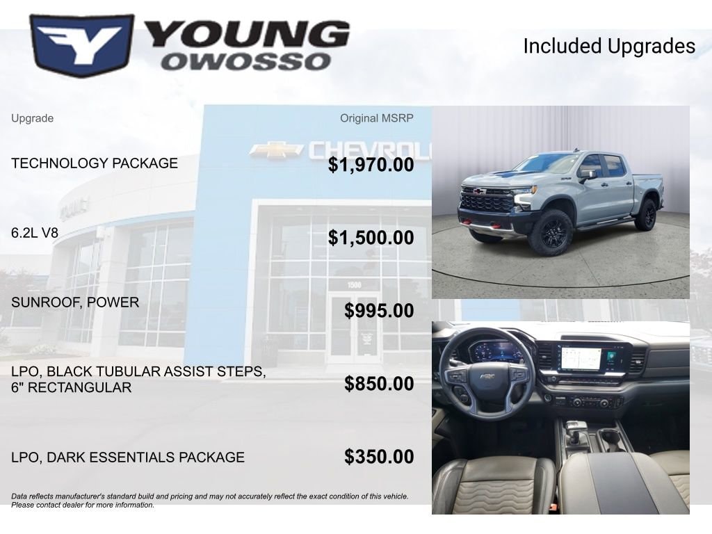 Certified.Chevrolet Certified Pre-Owned Details:* Roadside Assistance* Warranty Deductible: $0* 24 months/24,000 miles (whichever comes first) Certified Pre-Owned Scheduled Maintenance Plan and 3 days/150 miles (whichever comes first) Vehicle Exchange Program. SiriusXM 3-month trial subscription.* Limited Warranty: 12 Month/12,000 Mile (whichever comes first) from certified purchase date* 172 Point Inspection* Vehicle History* Transferable Warranty* Powertrain Limited Warranty: 72 Month/100,000 Mile (whichever comes first) from original in-service datePriced below KBB Fair Purchase Price!LOCAL TRADE!, CREW CAB!, EcoTec3 6.2L V8, 10-Speed Automatic, 4WD, Jet Black/Graystone Leather, 10-Way Power Driver Seat w/Lumbar, 10-Way Power Passenger Seat Adjuster w/Lumbar, 12.3 Multicolor Reconfigurable Digital Display, 120-Volt Bed Mounted Power Outlet, 120-Volt Interior Power Outlet, 15 Diagonal Multicolor Head-Up Display, 2 USB Data Ports, 2nd Row Heated Outboard Seats, Adaptive Cruise Control, All-Weather Floor Liner (LPO), Auto-Dimming Inside Rear-View Mirror, Bed View Camera, Black Name Plates (LPO), Black Tailgate CHEVROLET Lettering (LPO), Bluetooth® For Phone, Chevrolet Connected Access Capable, Chevytec Spray-On Black Bedliner, Color-Keyed Carpeting Floor Covering, Dark Essentials Package (LPO), Deep-Tinted Glass, Driver Memory, Dual Rear USB Ports (Charge Only), Electric Rear-Window Defogger, Electrical Steering Column Lock, Electronic Cruise Control, EZ Lift Power Lock & Release Tailgate, Floor Mounted Center Console, Front LED Fog Lamps, Front Rain-Sensing Wipers, HD Surround Vision, Heated Driver & Front Outboard Passenger Seats, Heated Steering Wheel, Heavy-Duty Air Filter, High Gloss Black Mirror Caps, Hill Descent Control, Hitch Guidance, Hitch Guidance w/Hitch View, In-Vehicle Trailering System App, Integrated Trailer Brake Controller, Keyless Open & Start, LED Cargo Area Lighting, Manual Tilt/Telescoping Steering Column, OnStar & Chevrolet Connected Services Capable, Outside Heated Power-Adjustable Mirrors, Performance Red Recovery Hooks, Perimeter Lighting, Power Front Passenger Windows w/Express Up/Down, Power Front Windows w/Driver Express Up/Down, Power Rear Windows w/Express Down, Power Sliding Rear Window w/Rear Defogger, Power Tilt & Telescoping Steering Column, Preferred Equipment Group 3LT, Rear Camera Mirror, Rear Cross Traffic Braking, Rear Park Assist, Rear Pedestrian Alert, Rear Wheelhouse Liners, Remote Vehicle Starter System, Safety Alert Seat, SiriusXM w/360L, Standard Tailgate, Steering Wheel Audio Controls, Technology Package, Theft Deterrent System (Unauthorized Entry), Trailer Camera Provisions, Trailer Side Blind Zone Alert, Trailering Package, Universal Home Remote, Up-Level Rear Seat w/Storage Package, Ventilated Driver & Front Passenger Seats, Wi-Fi Hot Spot Capable, Wrapped Steering Wheel, ZR2 Suspension Package.