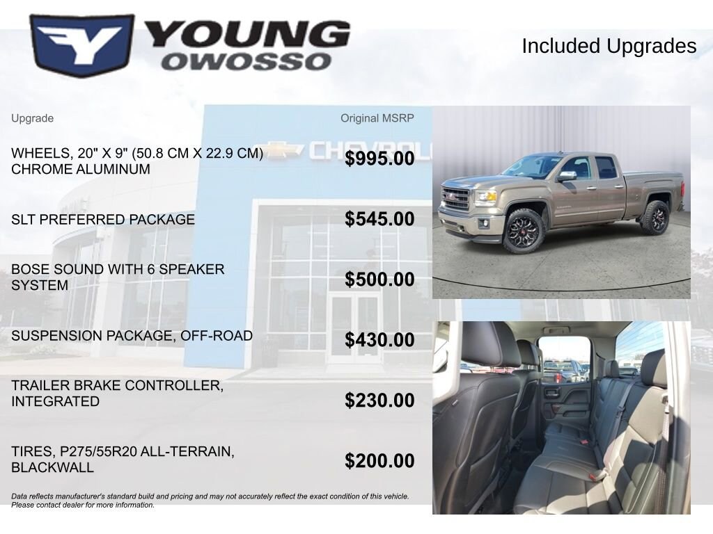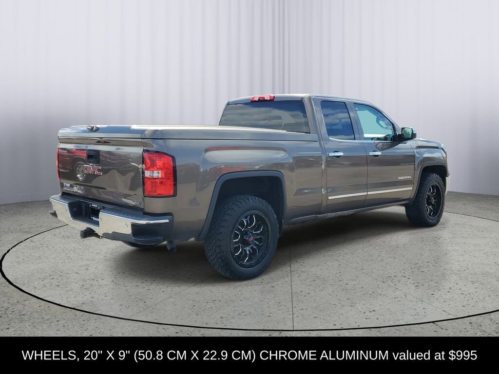LOCAL TRADE!, Sierra 1500 SLT, Double Cab, EcoTec3 5.3L V8 Flex Fuel, 4WD, 10-Way Power Driver's Seat Adjuster, 110-Volt AC Power Outlet, 150 Amp Alternator, 4.2 Diagonal Color Display Driver Info Center, Auto-Dimming Inside Rear-View Mirror, Auxiliary External Transmission Oil Cooler, Bose Speaker System, Chrome Bodyside Moldings, Chrome Door Handles, Chrome Grille Surround, Color-Keyed Carpeting w/Rubberized Vinyl Floor Mats, Deep-Tinted Glass, Driver & Front Passenger Illuminated Vanity Mirrors, Dual-Zone Automatic Climate Control, Electric Rear-Window Defogger, Electronic Autotrac Transfer Case, EZ Lift & Lower Tailgate, Front Frame-Mounted Black Recovery Hooks, Front Halogen Fog Lamps, Heated Driver & Front Passenger Seats, Heavy-Duty Rear Locking Differential, Hill Descent Control, Leather Wrapped Heated Steering Wheel, Leather Wrapped Steering Wheel w/Cruise Controls, LED Cargo Box Lighting, Manual Tilt Wheel Steering Column, Off-Road Suspension Package, OnStar 6 Months Directions & Connections Plan, Power Adjustable Pedals, Power Folding & Adjustable Heated Outside Mirrors, Power Windows w/Driver Express Up, Preferred Equipment Group 4SA, Rear 60/40 Folding Bench Seat (Folds Up), Rear Vision Camera w/Dynamic Guide Lines, Rear Wheelhouse Liners, Remote Keyless Entry, Remote Vehicle Starter System, Single Slot CD/MP3 Player, SLT Preferred Package, Steering Wheel Audio Controls, Theft Deterrent System (Unauthorized Entry), Trailering Equipment, Ultrasonic Front & Rear Park Assist, Universal Home Remote.