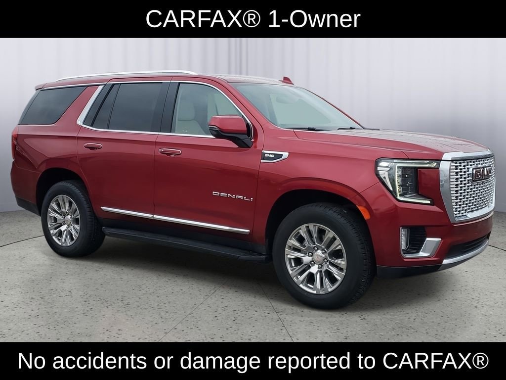 LOCAL TRADE!, CARFAX ONE OWNER!, CLEAN CARFAX!, 4WD, Yukon Denali, EcoTec3 6.2L V8, 4WD, Cayenne Red Tintcoat, Teak/Light Shale Leather, 15 Diagonal Multi-Color Head-Up Display, 2 Presets For Outside Rearview Mirrors, 3 Years of GMC Connected Services, 3rd Row 60/40 Power-Folding Split-Bench Seat, Adaptive suspension, Auto-leveling suspension, Automatic Stop/Start, Automatic temperature control, Bose 14-Speaker Surround w/CenterPoint, Bright Front & Rear Door Sill Plates, Chrome Door Handles w/Body-Color Strip, Dual Exhaust System, Floor Console, Galvano Bodyside Moldings, Hands-Free Power Programmable Rear Liftgate, HD Surround Vision, Heads-Up Display, Heated & Ventilated Driver & Front Passenger Seats, Heated 2nd Row Outboard Position Seats, Heated Driver & Front Passenger Seats, Heated Steering Wheel, Hill Descent Control, Inside Rear-View Auto-Dimming Mirror, Memory seat, Outside Heated Power-Adjustable Mirrors, Power Liftgate, Power Release 2nd Row Bucket Seats, Power Tilt & Telescopic Steering Column, Preferred Equipment Group 5SA, Rear Pedestrian Alert, Safety Alert Seat, Start/Stop System Disable Button, Universal Home Remote, Wireless Charging.